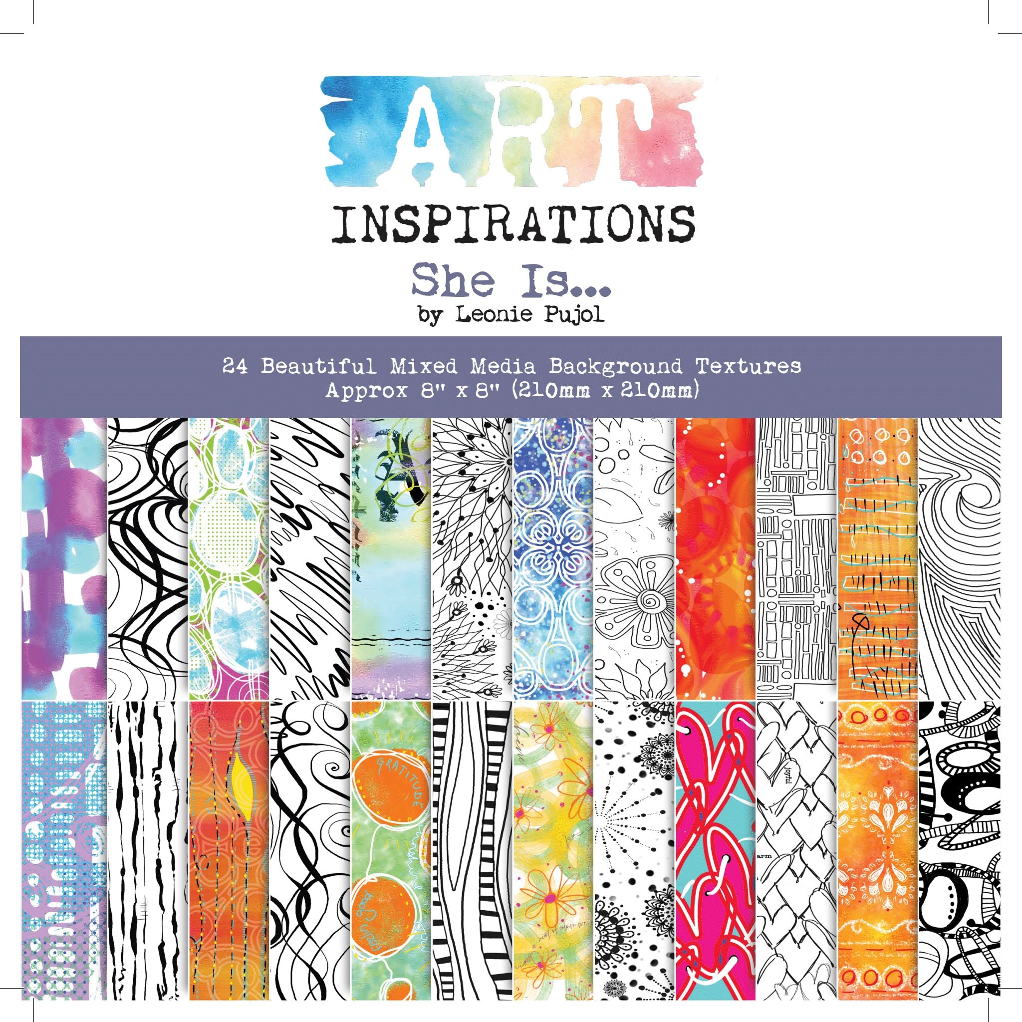 Introducing Art Inspirations second pad created by Leonie. The 8" x 8" Paper Pad has 24 double sided mixed media background papers, plus 2 sentiments pages.
